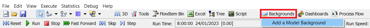 El primer paso que seguiremos para construir la planta real es importar el CAD (el plano de la planta en cuestión). Para importarlo, tenemos que pulsar sobre Backgrounds y, a continuación, sobre Add a model background.