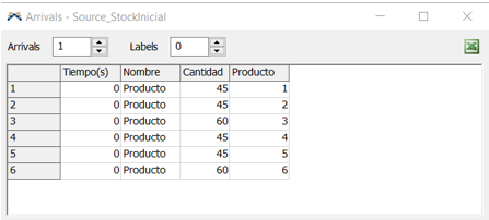Una vez definidas las salidas de la fuente, tenemos que indicar cómo será la generación de productos de este stock inicial. Abrimos de nuevo el menú de Properties de la Source y nos centramos en el apartado también llamado Source. En Arrival Style, abrimos el desplegable y seleccionamos Arrival Schedule. Estas llegadas las sacaremos del Excel descargado previamente, que importamos pulsando sobre Edit Table y, en la nueva ventana emergente, sobre el icono de Excel.